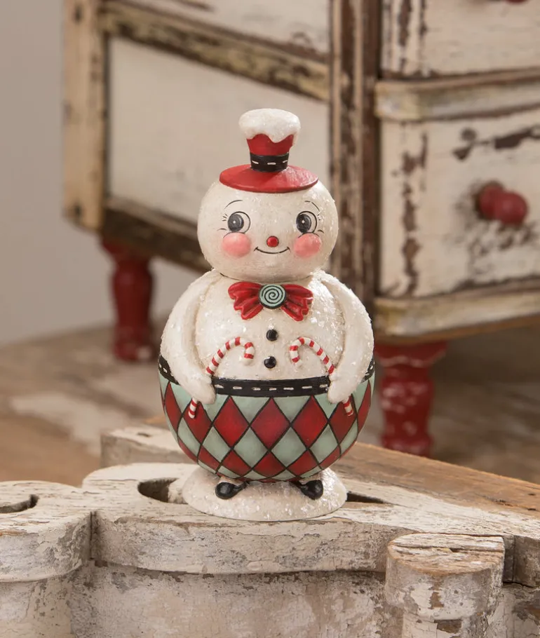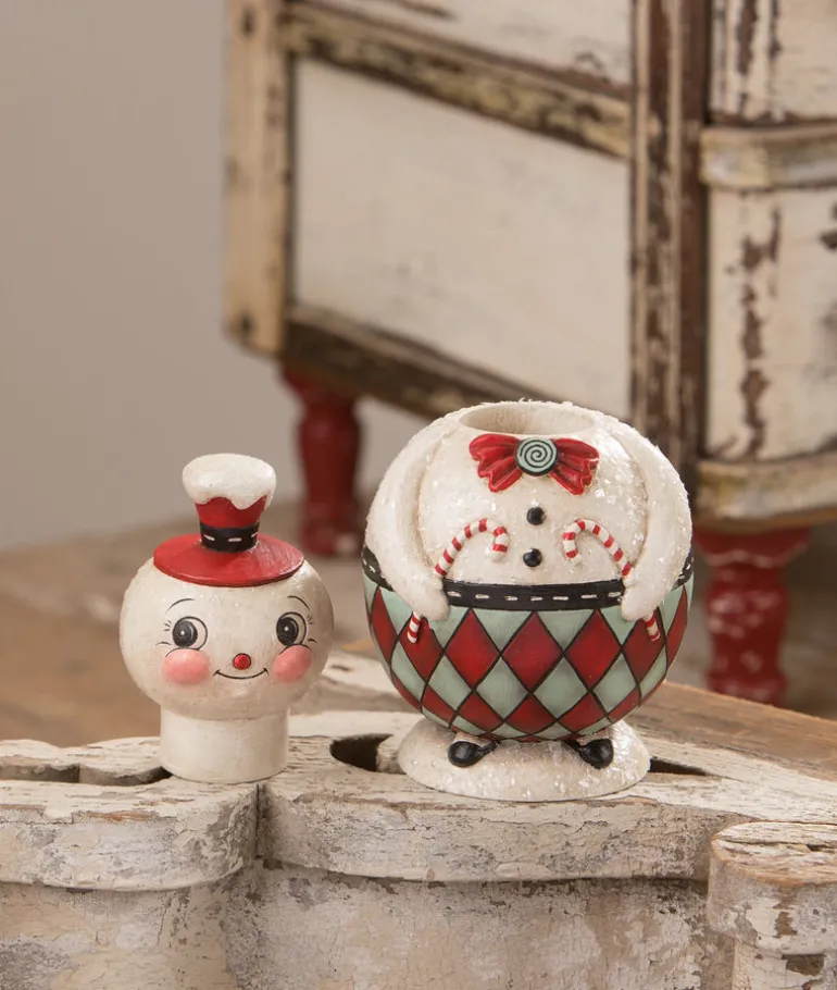 The fastest candy canes in the North…This chubby snowman jar by Johanna Parker has plenty of room to store little treats for someone special or for yourself! A layer of mica adds sparkle and shine!
