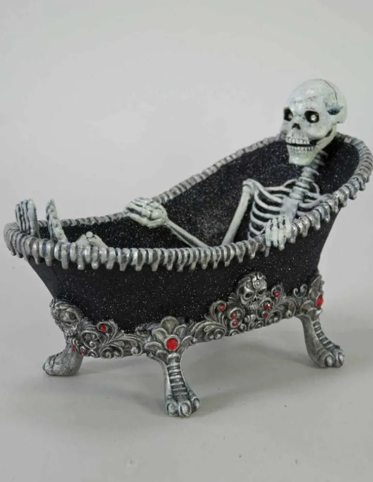Dead and Breakfast Skeleton in the Bathtub is the item 28-828202 of Katherine’s Collection – Halloween Collectibles.