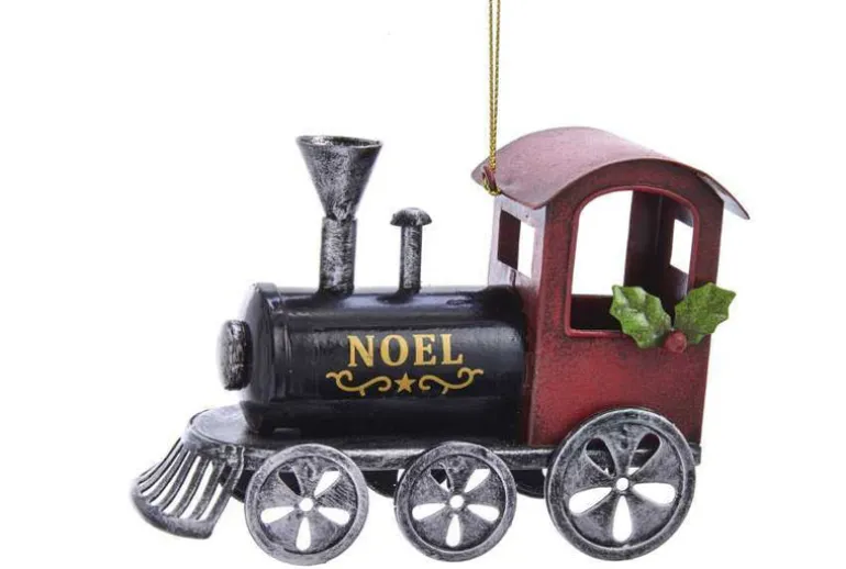Kurt Adler’s metal “Noel” locomotive train ornament is a charming addition to your home or holiday décor. This ornament features a red, black and silver design with holly leaves and berry accents and a silver some stack.