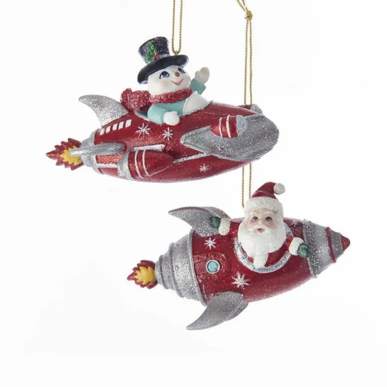 Take off into the Christmas season with these red and silver glittered Santa and Snowman ornaments from Kurt Adler. Each ornament is expertly crafted with details such as snowflakes, headlights and of course flames!