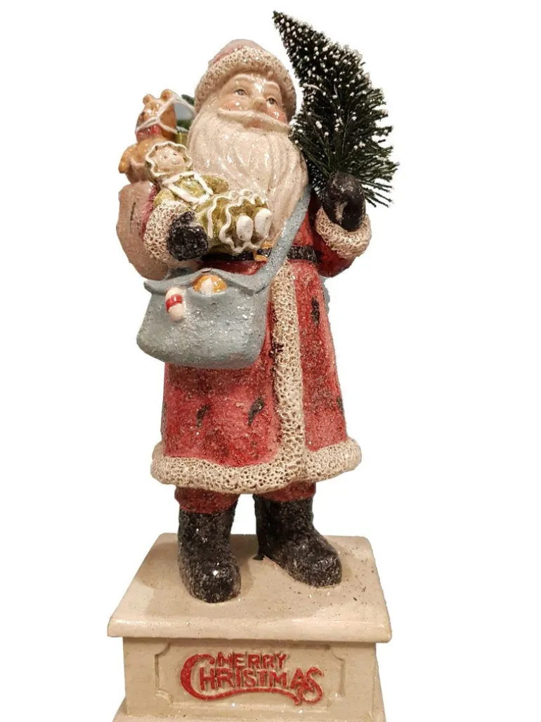 You cannot miss this enchanting Bavarian Santa Stocking Holder.